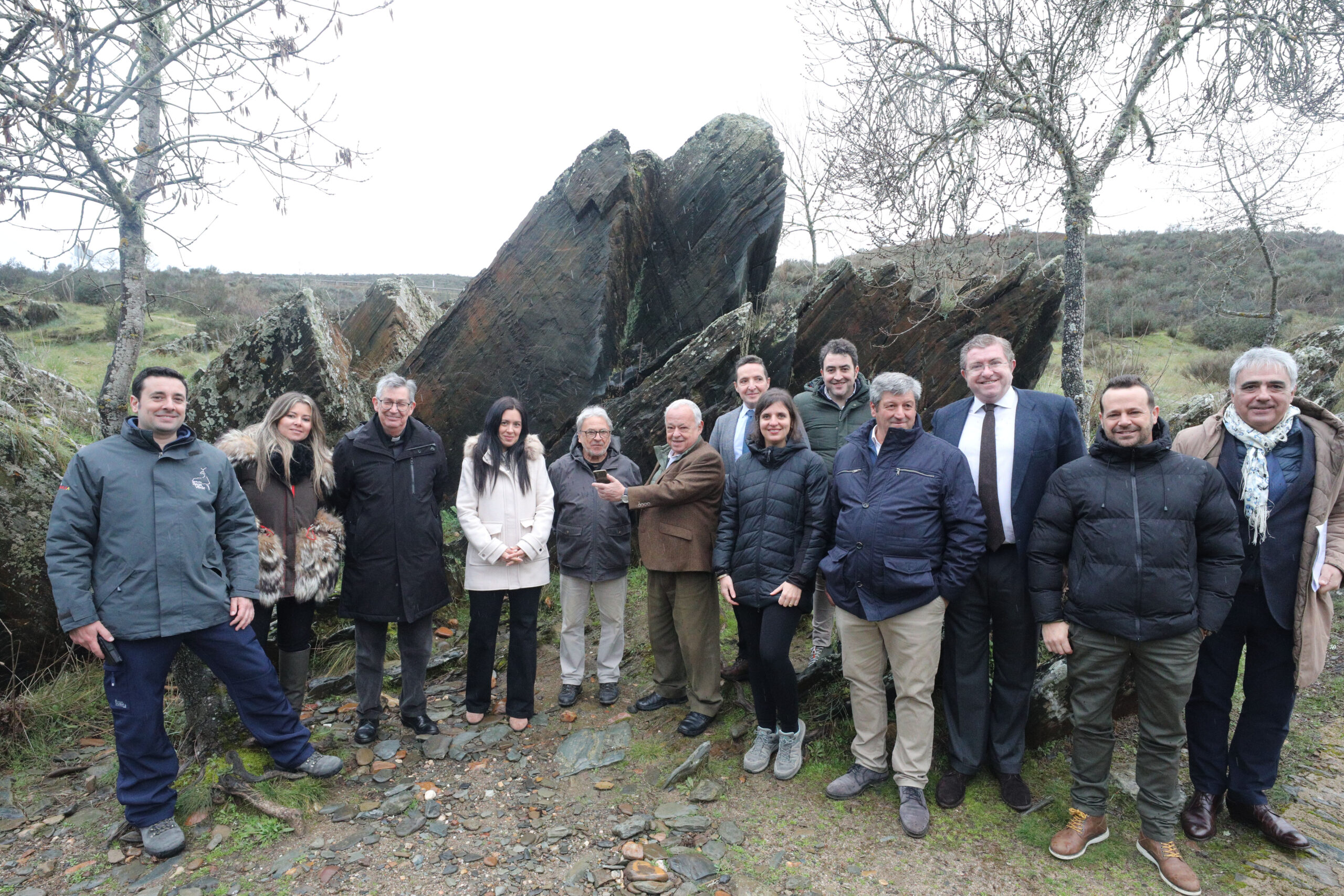 Siega Verde, 21 enero 2025.- El consejero de Cultura, Turismo y Deporte, Gonzalo Santonja , en su condición de presidente de la patronato de la Fundación Siega Verde, ha mostrado este martes el Yacimiento de Siega Verde (Salamanca) que es Patrimonio de la Humanidad a los rectores de la Universidad de Salamanca, Juan Manuel Corchado, y de la Universidad Pontificia de Salamanca, Santiago García-Jalón.