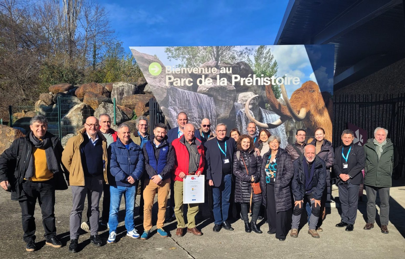 Alejandro Fonseca (5d, de pie) en la foto de grupo junto con el resto de miembros de la Ruta de Arte Prehistórico en el Parque de la Prehistoria de Tarascon